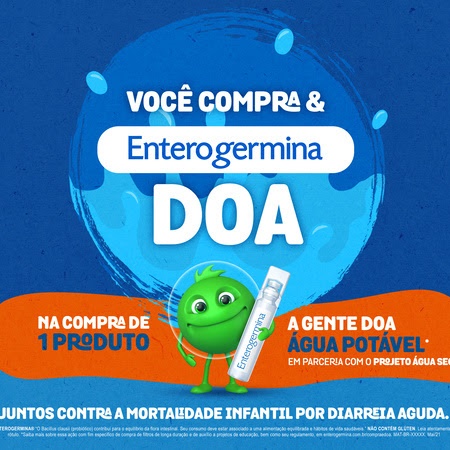 No mundo, 2 mil crianças morrem diariamente pela diarreia aguda. A principal causa é a ingestão de água contaminada, segundo a OMS e UNICEF, 1 em cada 3 pessoas no mundo não tem acesso a água potável. Sabendo disso, Enterogermina decidiu entrar nessa luta. A campanha, alinhada com o propósito da marca, que é erradicar a mortalidade infantil causada pela diarreia aguda, é um projeto desenvolvido juntamente com a agência CAUSE, consultoria especializada na gestão de causas via estratégias de comunicação, engajamento, advocacy e ESG, e a ONG Água Segura, empresa de triplo impacto cujo objetivo é garantir o acesso à água de forma sustentável para o desenvolvimento humano, econômico e ambiental.